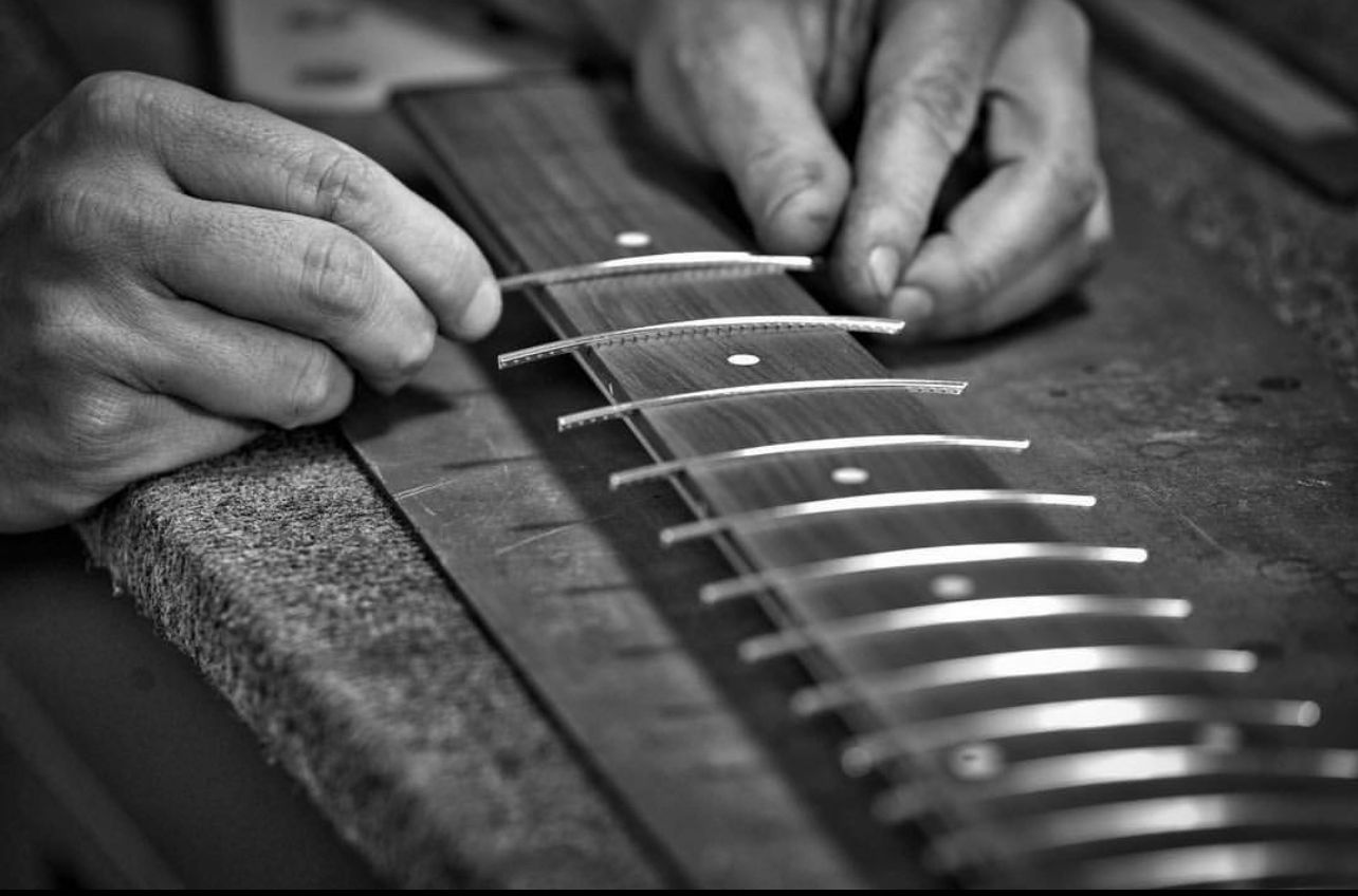 Precision fret leveling, crown, and polish, along with full refrets, performed for long-term durability and a smooth, consistency across the entire fretboard.